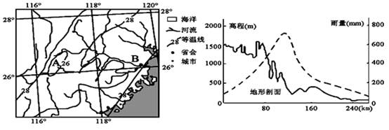 5、单选题 读下面某区域局部图和某日降水量图,回答下列小题。