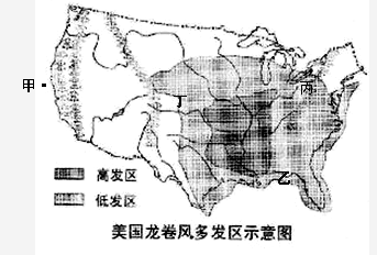 小题1:龙卷风发生在大气环境,故属于气象灾害。结合图示龙卷风的多发区位于美国中央大平原。