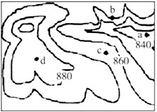 2、单选题 图所示a、b、c、d、e为等值线,读图回答下列各题。