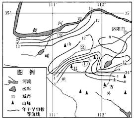 1、单选题  下图为“豫西部分地区多年平均年干旱旬数分布图”。一旬为10天,多年平均年干旱旬数与降水密切相关。据此回答下列各题。