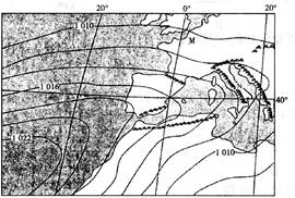 本题解析:此时海洋七出现高压,北半球为夏季。N地位于地中海附近.夏季炎热干燥;M地为温带海洋性气候,终年凉爽湿润。