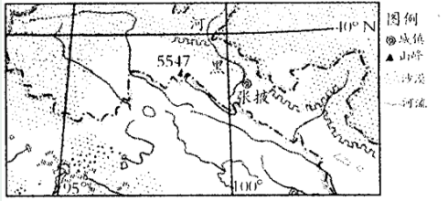 3、单选题 张掖位于中国甘肃省西北部,是古丝绸之路重镇,是全国重要的商品粮、瓜果蔬菜生产基地。读图回答下列各题。
