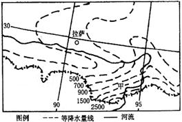 小题1:图中等降水量线明显向北凸出的主要原因是: