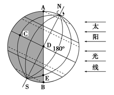 (3)图中A地的昼长为 小时,E地的昼长为 小时,地方时 时日出。