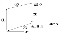 1、单选题 下图为地球上气压带风带局部示意图,读图回答题。