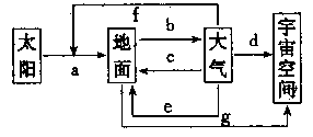 【小题2】大气通过逆辐射对地面产生温室效应,而图中c表示大气逆辐射。故选C。