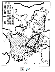 3、综合题 (11分)读我国西三角经济圈示意图(图8),完成下列问题。