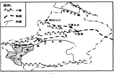 (2)比较塔里木盆地与准噶尔盆地地表组成物质分布的差异,并分析原因。(10分)