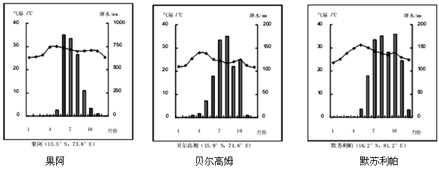 【小题2】果阿与贝尔高姆经纬度位置接近,但植被不同。果阿的植被及形成原因表述正确的是