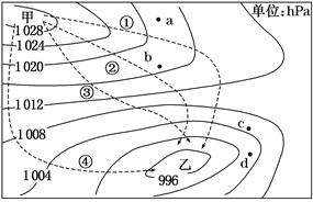 【小题2】图中从甲地到乙地的气流方向,正确的是