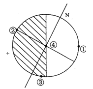 3、单选题 读下图(阴影部分为夜半球),回答下列各题。