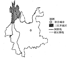 5、综合题 2003年7月2日,联合国第27届世界遗产大会通过了中国“三江并流”自然景观列入《世界自然遗产名录》。“三江并流”区域内,南北向的大江与大山相间排列,从空中望去,三条大江由北往南纵贯全区,平行流动近170千米,形成了”四山并列、三江并流”这一世界独有的地理奇观。读“三江并流”自然景观的位置示意图,回答下列问题。(9分)
