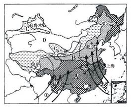 (2)图中数码①和②代表影响我国的夏季风,①为?季风,
