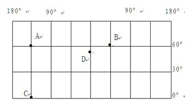 2、综合题 (12分)读图,此时ABC弧线上的太阳高度角为00,某人正在距离B地正南方3885km的某地观测北极星,观测到的北极星平均仰角为420。据此完成下列各题。