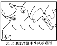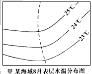 (1)图甲虚线所示的洋流朝____(方向)流动,在图乙所示的①、②、③、④四海区中,图甲表示的海