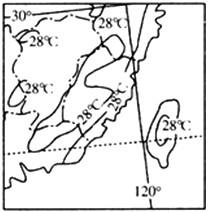 2、单选题 读下图我国东南部地区某月等温线分布图,回答1~2题。