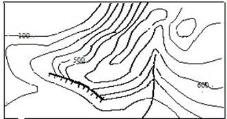 小题1:根据图示等高线的分布判读,陡崖底部的海拔为300—400M,陡崖顶部的海拔为600---700M,故计算陡崖高度约200—400之间。