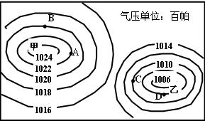 (1)就大气运动形式而言,图中甲是?;就气压分布状况而言,图中乙是?;