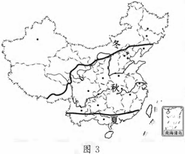1.形成图中我国各地在同一时问表现为三种季节的最主要原因是2.此时,由西南到长江以南的地区形成大范围的降水,其形成原因最可能的是
