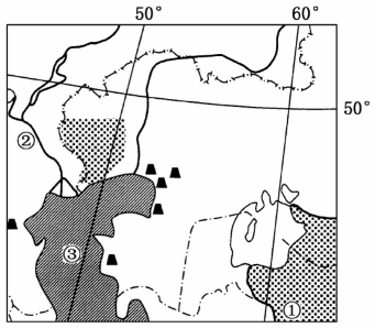 本题解析:(1)①是阿姆河,沿岸的主要经济作物是棉花,光照充足,便利的河水灌溉是种植棉花的有利条件。(2)该区域的石油通过管道运输运往我国,最先到达的是新疆维吾尔自治区。(3)积雪融水是伏尔加河河水主要的补给水源。
