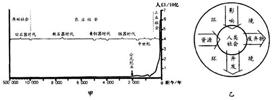 (1)甲图所示三种社会形态中,哪些属于乙图所示人地关系原理的范畴?
