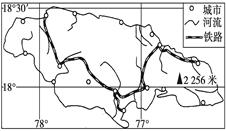 材料一 下图为某岛屿的示意图,该岛面积1.09万平方千米,约有280万人口,岛上主峰蓝山峰海拔为2256米,山区多火山活动。山坡上的咖啡园里出产世界上最昂贵的蓝山咖啡。