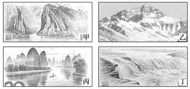 【小题1】根据图示人民币风景图,可知甲图为巫峡,乙图为珠穆朗玛峰,丙图为为桂林山水,丁图为黄河壶口瀑布,甲图巫峡是由于地壳上升,长江水强烈下切形成的,乙图珠穆朗玛峰是由于印度洋板块与亚欧板块产生挤压运动,地壳上升形成的;丙图桂林山水是石灰岩广布,该地降水丰富,由流水溶蚀作用所形成的喀斯特地貌;丁图黄河壶口瀑布是由于流水的溯源侵蚀作用所形成的。所以与流水溶蚀作用密切相关的是丙图桂林山水,选择C项。