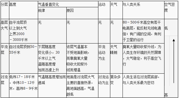 近地面大气主要由干洁空气、水汽和悬浮物组成,其主要成分是N、O,是地球自然环境的重要组成部分。其垂直分层是:
