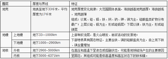 (2)圈层结构及特征:
