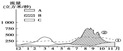 3、综合题  下图是我国东部某地区一水电站大坝下游某水文站在修坝前后测得的该河两条全年流量曲线图。读图5,回答下列问题。(10分)