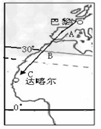 2、单选题 每年1月,从巴黎——达喀尔都会举办汽车拉力赛,目前已经成为世界上最艰苦的汽车赛事之一,人称“死亡之旅”。读图,回答1—2题。