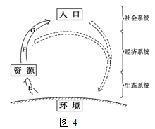 3、单选题  读图4“环境、资源和人口关系示意图”,回答问题。