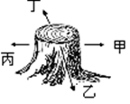 (4)树木向阳一侧由于植物生长量大,故年轮线较为稀疏。我国一野外考察队在大兴安岭迷失了方向,考察队员通过观察树木年轮特征后,确定了南行线路应为图中的         方向(填正确选项字母)。(2分)