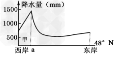 5、单选题  下图为某大陆北纬48?°沿线地区的年降水量变化示意图,读图完成1 ~2 题。