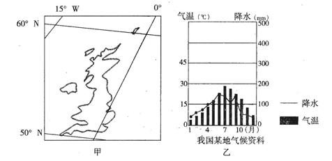 1、单选题  读某国地理位置图和我国某地气候资料图,回答36~38题。