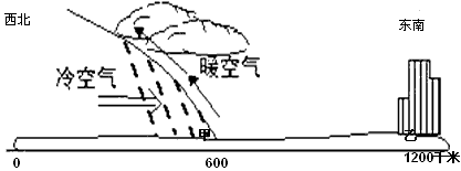 4、单选题  读“冷锋示意图”,这种锋面的气团活动规律是