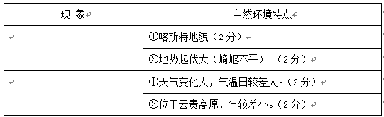 (1) 表中是云南地区两种特有现象,说出其反映的当地自然环境特点。(8分)