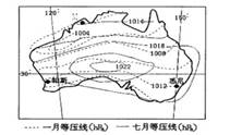 (1)澳大利亚大陆7月最高气压与1月最低气压的差值接近?百帕。(2分)
