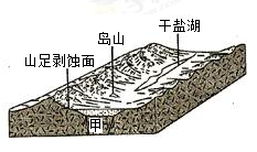 5、单选题 在干旱地区大山的山麓,某些风蚀洼地或干河洼地的底部,在岩石裸露的平坦地面,覆盖着一层薄薄的尖角石块和砾石,其岩性与基岩一致,此称为岩漠。读岩漠的地貌结构示意图,完成下列小题。
