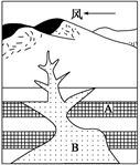 (2)图中B岩层是岩浆冷却凝固成的岩浆岩,炽热岩浆与沉积岩接触,可能使沉积岩发生变质作用,形成变质岩。