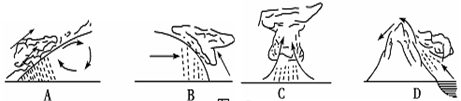 2、单选题 下图中,表示暖锋降水天气的是( )