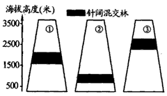 2、影响①与②、②与③两地山地针阔混交林出现海拔高度差异的主要因素分别是