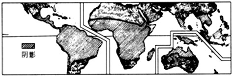 3、单选题 下图是世界某地理事物(阴影部分)分布示意图,完成1~2题。