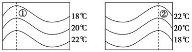 本题解析:本题考查洋流。根据等温线的分布:①处越往北温度越低,判断为北半球,洋流从水温高处流向水温低处,故为暖流;②处越往北温度越高,判断为南半球,洋流从水温低处流向水温高处,为寒流,故B项错误。