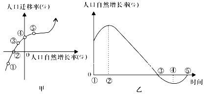 5、单选题 该图是甲.乙两国人口变化的曲线图,读后分析完成下面3题: