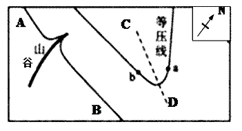 1、单选题 图中“AB线为地球自转线速度等值线”,CD为锋面。读图回答下列问题。