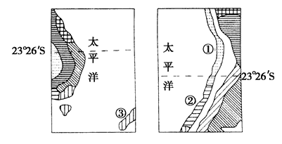2、单选题 下图中的两幅图是世界局部地区气候类型分布图,读图回答题。