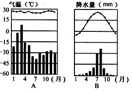 3、单选题 读A和B两地月平均气温曲线和降水量柱状图,回答题。