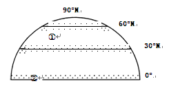 1.①处的盛行风向是2.在气压带②控制下的赤道附近地区,其气候特征是终年