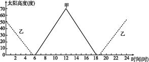 1、单选题 图表示甲、乙两地的太阳高度日变化情况,且此季节北京多雷雨天气。读图,回答题。